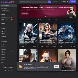 Upon entering GPTGirlfriend.online, you're greeted with a modern, user-friendly interface. The homepage showcases a variety of AI characters, each with unique personalities and backstories. Navigation is straightforward, allowing users to browse categories, create custom characters, or dive into conversations with existing ones.